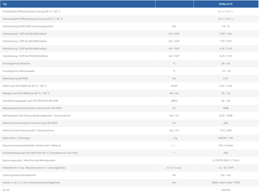 La NIBE S1256 PC raggiunge un coefficiente di prestazione stagionale (SCOP) fino a 5,95, rendendola una pompa di calore altamente efficiente con bassi costi di esercizio e una produzione di acqua calda sanitaria ad alte prestazioni. La pompa di calore è disponibile nella potenza 1,5–8 kW. La NIBE S1256 PC è caratterizzata da un basso livello di rumorosità ed è adatta sia per nuove costruzioni sia come sostituzione di un impianto di riscaldamento esistente.